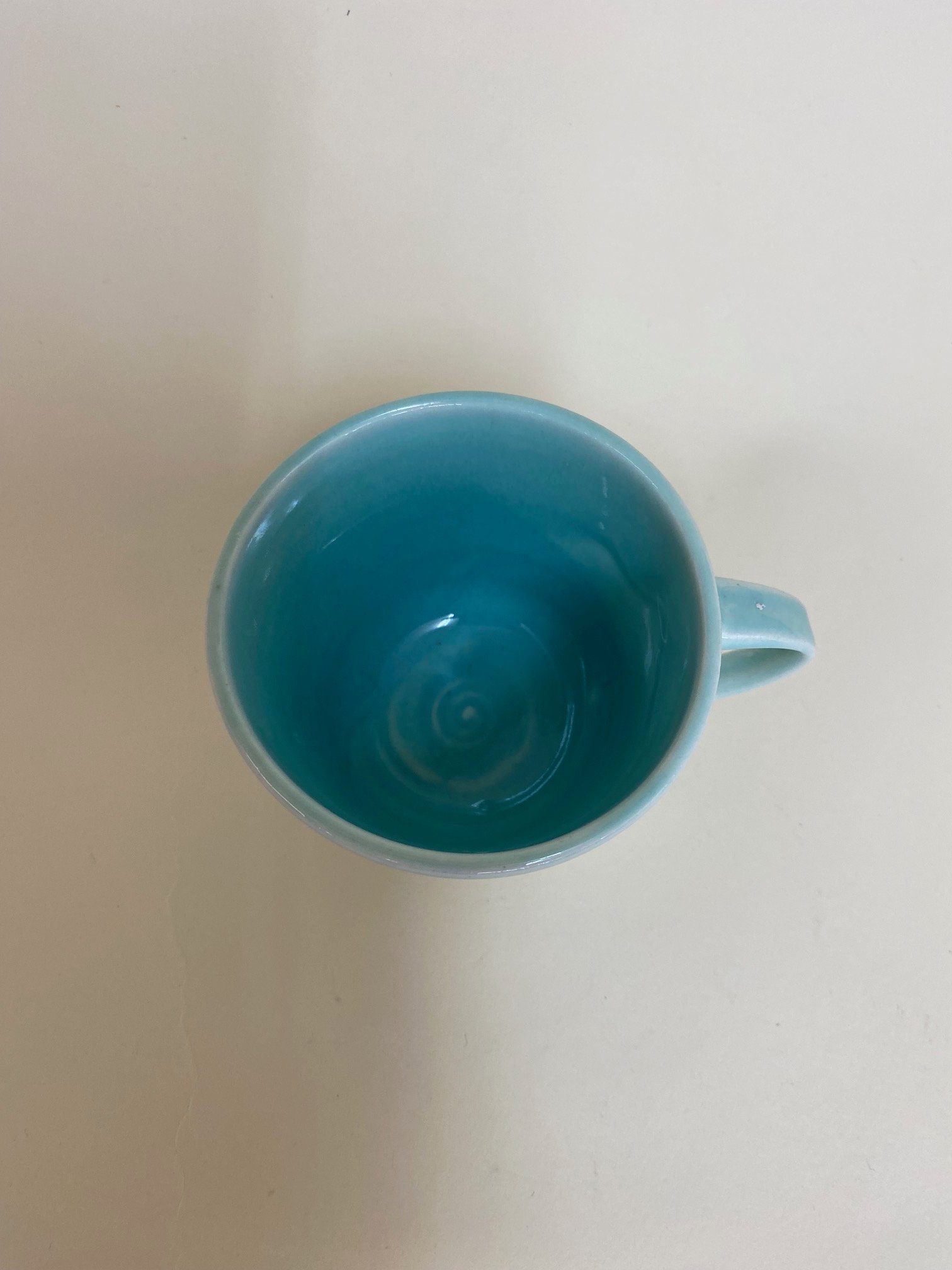 multiple blue cups in light blue, 8cm high by 9cm wide at rim, multiple in stock