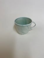 cup, light green with streaks, 8cm high and 9cm across at rim, multiple available