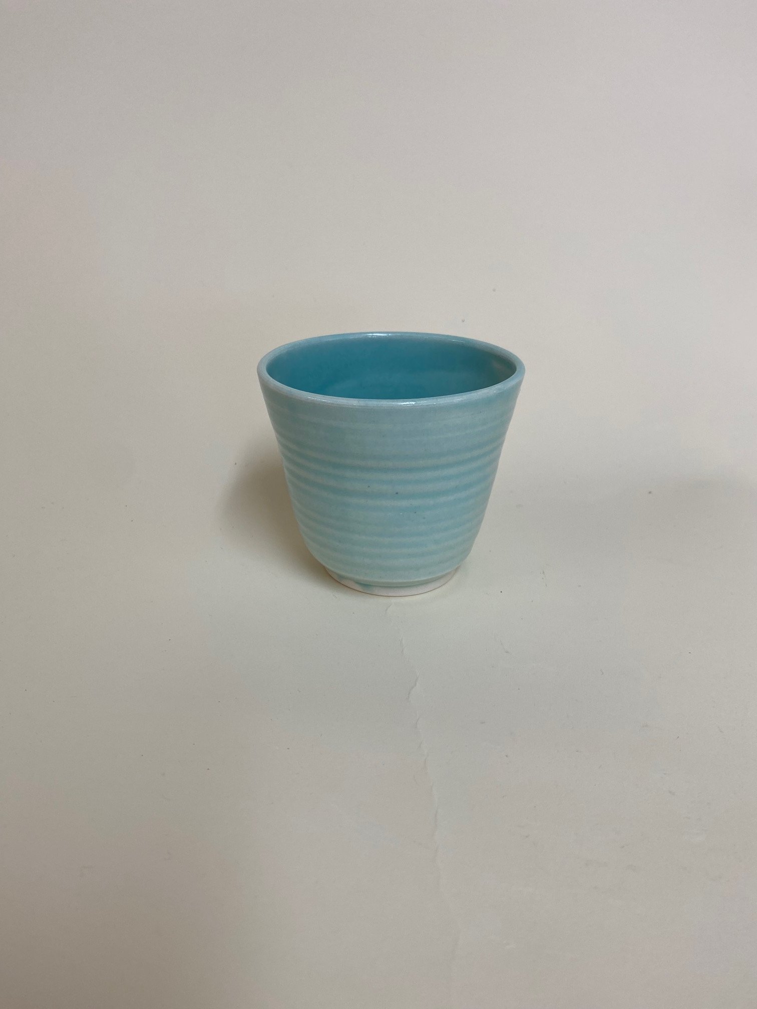 light blue tumbler, approx 8cm high x 9cm wide at rim, multiple available